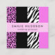 Leopard Print, Zebra Print, Animal Print, Pink Square Business Card
