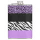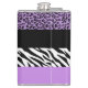 Leopard Print, Zebra Print, Animal Print, Purple Hip Flask