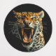 Fierce Powerful Leopard Roaring attack portrait close up with long fangs. Original vector illustration isolated on white Copyright BluedarkArt TheChameleonArt.