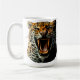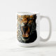 Fierce Powerful Leopard Roaring attack portrait close up with long fangs. Original vector illustration isolated on white Copyright BluedarkArt TheChameleonArt.