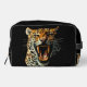 Fierce Powerful Leopard Roaring attack portrait close up with long fangs. Original vector illustration isolated on white Copyright BluedarkArt TheChameleonArt.