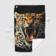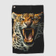 Fierce Powerful Leopard Roaring attack portrait close up with long fangs. Original vector illustration isolated on white Copyright BluedarkArt TheChameleonArt.