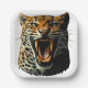 Fierce Powerful Leopard Roaring attack portrait close up with long fangs. Original vector illustration isolated on white Copyright BluedarkArt TheChameleonArt.
