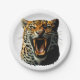 Fierce Powerful Leopard Roaring attack portrait close up with long fangs. Original vector illustration isolated on white Copyright BluedarkArt TheChameleonArt.