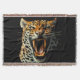 Fierce Powerful Leopard Roaring attack portrait close up with long fangs. Original vector illustration isolated on white Copyright BluedarkArt TheChameleonArt.