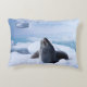 A leopard seal is lying on a floating ice sheet in Antarctica.