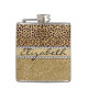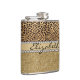 Leopard Spot Gold Glitter Rhinestone PHOTO PRINT Hip Flask