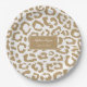 Personalised Elegant gold white LeopardPaper Plates . Featuring and elegant and chic black leopard textured pattern with customisable typography in trendy script font and personalised with your name and professional title.