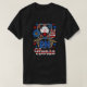 I give wanted to give this a 4 instead of a 5 because these Basic DARK T0shirts run unexpectedly SLIM or Narrow. Which is great if you do not have a potbelly, but I have a paunch. It isn't the shirt's fault that I've got a beer belly. The design and shirt itself is a quality cotton shirt. The color is more of a deep purple, but still a very pretty color. The Basic DARK T-shirts run a bit SLIMMER than the Basic Ts. The neck is a fraction narrower (or seems to be narrower) also. I'm a paunchy middle-aged woman and my neck is 12 inches (31cm) thick and the neckline fell about the same as in the photo of the man, and I had the desire to tug it a bit. So if you're a thick necked man or like loose shirts, be aware these are slimmer shirts. Once I get rid of my lockdown paunch it'll look great. The shirt washed well in cold water with no apparent bleeding. We don't have a dryer, so it hung dry. Did not shrink. Love the colors and the design. The design looks smaller on my shirt than it does on the model on-line. But still, it looks good on the shirt. The printing looks as it does on the model, just the size seems fractionally smaller. Washed garment in cold water, hung dry and design appeared unaffected.