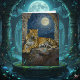 A leopard themed birthday card for a husband. Inside is a sentimental message that you can leave or edit. On the front is an illustration of a majestic leopard with fur like molten gold, laying on a cliff ledge bathed in ethereal moonlight. Intricate carvings adorn crumbling stone pillars, and bioluminescent flora casts a soft, otherworldly glow. The scene is rendered in a rich, textural oil painting style with thick strokes.