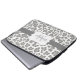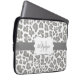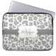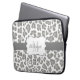 Leopard print design neoprene laptop sleeve in white and grey with a grey stripe, white edged with grey banner you can personalise with your name and monogram initial!