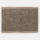 A stylish throw blanket which showcases a striking black and brown leopard pattern. The leopard print, a timeless and versatile motif, effortlessly complements a range of interior styles, from modern to classic.