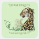 Leopard Wild Cat Green Henna Bookplate Square Sticker