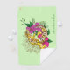 A leopard gecko sits amongst flowers and henna against a backdrop of green