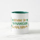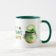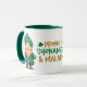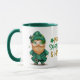 Here's a fun mug for St Patrick's Day, or just for anyone who is proud Irish! The stylised text at the middle says "Prone to Shenanigans & Malarkey" in gold and green, with two shamrocks. On one side of the text is a funny red bearded leprechaun gnome dressed in green. On the other side is the pot of gold!
