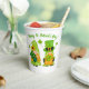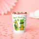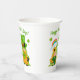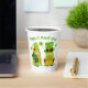 This cute St. Patrick's Day paper cup features four gnomes dressed like leprechauns carrying green shamrocks, lucky gold with a rainbow and more. Above in green script it reads, "Happy St. Patrick's Day!" Designed by Susan Coffey.