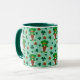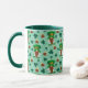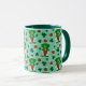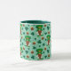 Adorable leprechaun gnomes surrounded by lucky pots of gold and clover! Sea Foam Green background. Choose your handle and inside colour or keep the deep green/teal colour. Enjoy your St Patrick's Day beverage in this cute mug! Great seasonal gift for teacher, too!