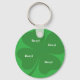 A keychain with a leprechaun carrying a pot of gold with a rainbow behind him. You can edit or personalize the text. On the back is a four leaf clover. Matching products available.