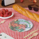 Funny party paper plate for St Patrick's Day with two Leprechauns from Brittany. It was a painting on window of a pub and we can see the Church Reflection behind the Leprechauns. Matching paper napkin, craft products, greeting card, postcard and more...