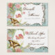This is an elegant and sophisticated Favour Gift Tag. It blends the best of tradition and the freshness of the contemporary. Simply punch a hole in the end and tie on to your favour bags or table place setting decorations. You can change the message on the reverse side to communicate your love and appreciation for your guests. This "Les Fleur Pavoine" Wedding Collection, meaning "The Peony Flower," is a brand new art collection in a vintage style. This design is patterned after elegant Antique French Wallpaper, with aged and worn textures, handwritten text, butterflies, roses, tulips and of course peonies. Beautifully hand drawn swirls frame the text. YOU MIGHT ALSO ENJOY:INVITATIONS: