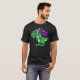 I give wanted to give this a 4 instead of a 5 because these Basic DARK T0shirts run unexpectedly SLIM or Narrow. Which is great if you do not have a potbelly, but I have a paunch. It isn't the shirt's fault that I've got a beer belly. The design and shirt itself is a quality cotton shirt. The color is more of a deep purple, but still a very pretty color. The Basic DARK T-shirts run a bit SLIMMER than the Basic Ts. The neck is a fraction narrower (or seems to be narrower) also. I'm a paunchy middle-aged woman and my neck is 12 inches (31cm) thick and the neckline fell about the same as in the photo of the man, and I had the desire to tug it a bit. So if you're a thick necked man or like loose shirts, be aware these are slimmer shirts. Once I get rid of my lockdown paunch it'll look great. The shirt washed well in cold water with no apparent bleeding. We don't have a dryer, so it hung dry. Did not shrink. Love the colors and the design. The design looks smaller on my shirt than it does on the model on-line. But still, it looks good on the shirt. The printing looks as it does on the model, just the size seems fractionally smaller. Washed garment in cold water, hung dry and design appeared unaffected.