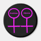 This lovely magnet is designed for lesbians. It features two pink female symbols standing side by side. The background is black and there is customisable pink text inside each of the symbols to put names. Surprise your sewwtheart with this lovely personalised gift.