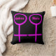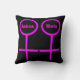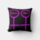 This awesome pillow is designed for lesbians. It features two pink female symbols standing side by side. The background is black and there is customisable pink text inside each of the symbols to put names.