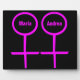 This awesome plaque is designed for lesbians. It features two pink female symbols standing side by side. The background is black and there is customisable pink text inside each of the symbols to put names.