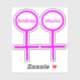 This awesome shaped sticker is designed for lesbians. It features two pink female symbols standing side by side. The background is black and there is customisable pink text inside each of the symbols to put names.