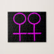 This awesome puzzle is designed for lesbians. It features two pink female symbols standing side by side. The background is black.