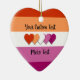 Ceramic Christmas ornament shaped like a heart with the lesbian pride flag with five hearts in the centre of the design. Pink, white, and orange flag of the lesbian pride movement; with an editable text field for your name or message; a great way to decorate your Christmas tree :D