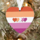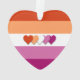 Heart Ornament pillow with hearts in the colours of the lesbian pride flag, with lesbian pride flag in the background