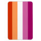 The "pink" lesbian flag consists of six shades of red and pink colors and a white bar in the center. The original design, known as the lipstick lesbian flag, includes a red kiss and was introduced in the weblog This Lesbian Life in 2010. Both the "pink" and lipstick lesbian flags represent "homosexual women who have a more feminine gender expression".