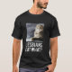 I give wanted to give this a 4 instead of a 5 because these Basic DARK T0shirts run unexpectedly SLIM or Narrow. Which is great if you do not have a potbelly, but I have a paunch. It isn't the shirt's fault that I've got a beer belly. The design and shirt itself is a quality cotton shirt. The color is more of a deep purple, but still a very pretty color. The Basic DARK T-shirts run a bit SLIMMER than the Basic Ts. The neck is a fraction narrower (or seems to be narrower) also. I'm a paunchy middle-aged woman and my neck is 12 inches (31cm) thick and the neckline fell about the same as in the photo of the man, and I had the desire to tug it a bit. So if you're a thick necked man or like loose shirts, be aware these are slimmer shirts. Once I get rid of my lockdown paunch it'll look great. The shirt washed well in cold water with no apparent bleeding. We don't have a dryer, so it hung dry. Did not shrink. Love the colors and the design. The design looks smaller on my shirt than it does on the model on-line. But still, it looks good on the shirt. The printing looks as it does on the model, just the size seems fractionally smaller. Washed garment in cold water, hung dry and design appeared unaffected.