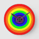 This awesome clock is designed for lesbians. It features a round rainbow with two little pink female symbols, standing side by side in the centre of the rainbow.