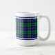 Coffee mug with the hunting tartan for Clan Leslie and its septs, including Abernathy and Bartill. Royal blue and bright green Scottish plaid pattern from 1810, with black, which and red accents.