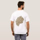 An editable title and slogan accompanies the black motif in a white band with blue band above and green band below of the Basotho flag on the front of this t-shirt. The back displays a detailed map of Lesotho.