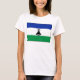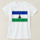 The front of this t-shirt boldly displays the Basotho flag with its distinctive black motif in a white band with blue band above and green band below. This is matched at the back by an attractive map of Lesotho.
