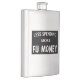 The product is a good size and came exactly as it was pictured. The lid is not attached to the flask, which could be dangerous on drunken nights... The print came out surprisingly well and looks very sharp. Would definitely recommend.