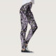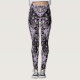 The leggings featured the image "Lesson of Creation" by Carmen Fine Art in shades of violet, purple, grey, and white in a modern art decorative style.