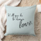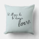 Simple light blue pillow with handwritten font quote design on both front and back. Quote reads: "Let All You Do Be Done In Love". Lettering is in black. Look for this design on other products from Simple Living.