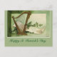 Vines of green shamrocks are framing a rolling scroll and golden harp. Greeting on the scroll: Let Erin Remember. Image of a Vintage St. Patrick’s Day postcard by Ellen Clapsaddle on a custom light green background.