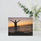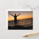 This postcard shows the silhouette of a person raising their arms to Heaven in praise, set against a morning sunrise. It reads, "Let everything that hath breath praise the Lord!" (Ps. 150.6)