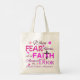 Inspirational breast cancer quote of “When FEAR Knocks, Let FAITH Answer the Door” for breast cancer fighters who have faith in God.
