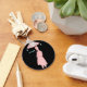 Let it Rain. A minimalist vector design featuring a woman in a pink dress holding a pink umbrella as giant raindrops fall about her. A great gift for fans of rainy days, minimalist art, and digital design.