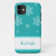 Whimsical and fun Let it Snow Case-mate Barely There iPhone 5 Case in turquoise featuring a cascade of hand drawn snowflakes. This fun iPhone case will keep your phone protected with holiday or winter flair. Easy to customise, simply add the personalised text of your choosing.