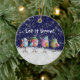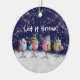 A fun ornament to share your Holiday greetings. A quartet of colourful cartoon birds, apparently not too keen on flying south this winter, are decked out in their winter garb and bracing themselves for the snow. Customise this ornament by changing the text fields for a truly unique keepsake. Enjoy the snow!