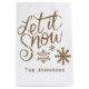 White with gold Let it Snow Christmas personalised gift bags for holiday gifting.
