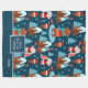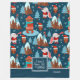Add a cute seasonal touch to your holiday living room decor with this adorable custom blue and white fleece blanket. Blanket has a pattern of a festive brown bear ice skating, an owl wearing a Santa hat and glasses, a bird on a snowy mountain, a bunny playing a trumpet, and Christmas trees in the snow. Center text says I don't know let it snow. Add your family last name for a personalized touch.