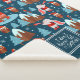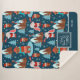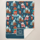 Add a cute seasonal touch to your holiday living room decor with this adorable custom blue and white sherpa blanket. Blanket has a pattern of a festive brown bear ice skating, an owl wearing a Santa hat and glasses, a bird on a snowy mountain, a bunny playing a trumpet, and Christmas trees in the snow. Centre text says I don't know let it snow. Add your family last name for a personalised touch.